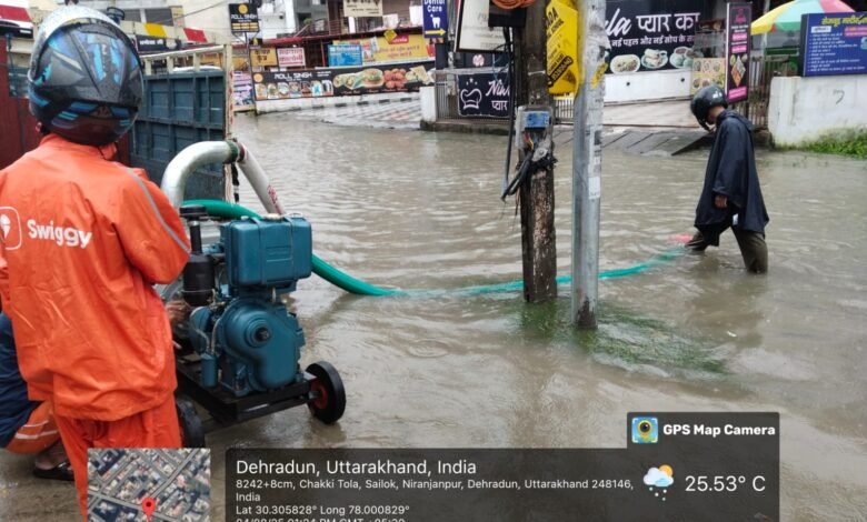 माता मंदिर रोड, जोगीवाला, प्रिंस चौक एवं आईटीबीपी रोड पर डी-वाटरिंग पंप की मदद से की गई निकासी