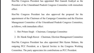 ब्रेकिंग न्यूज़:कांग्रेस हाईकमान ने की बड़ी नियुक्तियाँ — प्रीतम सिंह और डॉ. हरक सिंह रावत को सौंपी अहम जिम्मेदारियाँ कांग्रेस…